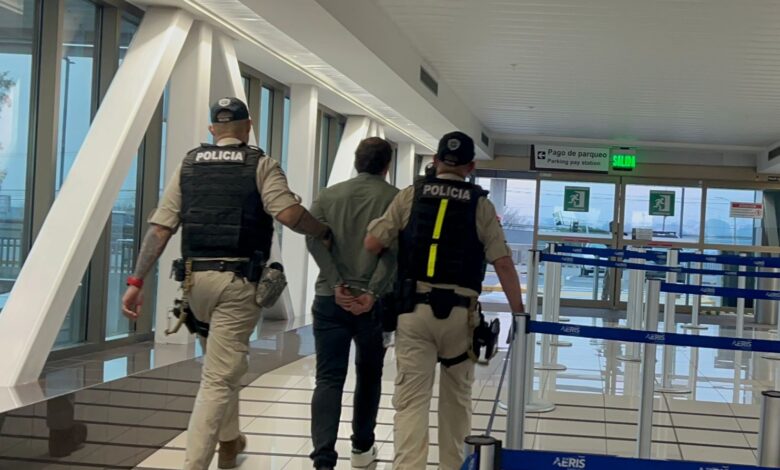 El sujeto fue detenido en el Aeropuerto Internacional Juan Santamaría en Alajuela, en el punto de inspección de pasajeros con máquinas de rayos X, previo a la entrada a las salas de abordaje.