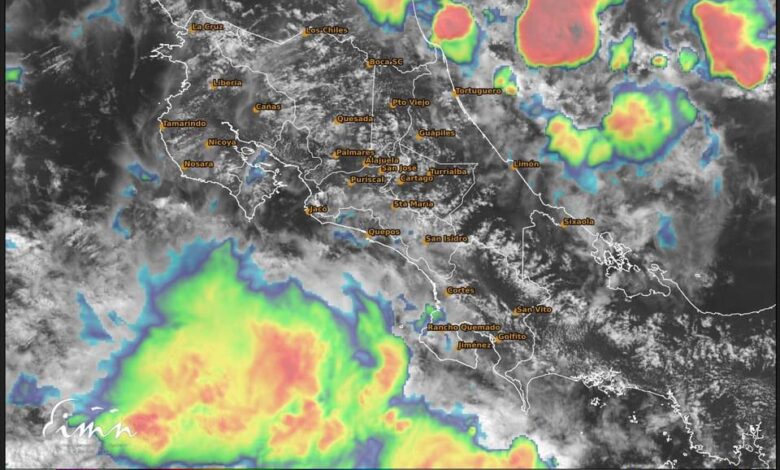 Se esperan aguaceros con tormenta eléctrica en el Pacífico Central y Pacífico Sur, estos se concentrarán principalmente en las montañas y se propagarán hacia sectores costeros al finalizar la tarde continuando hacia primeras horas del período nocturno. Se estiman acumulados de precipitación entre 20 mm y 60 mm en periodos de 6 horas con posibles acumulados localizados superiores.