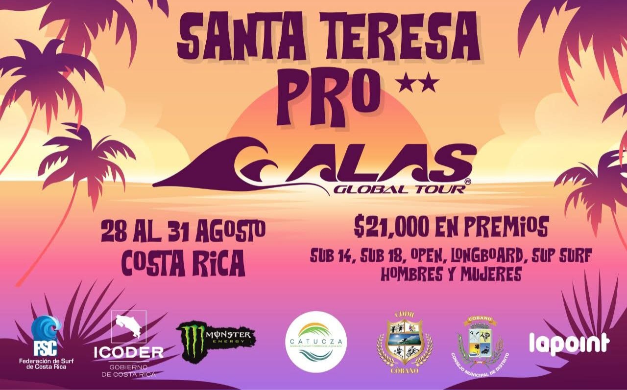 Santa Teresa de Cóbano se convierte esta semana en el epicentro del surf internacional. Del jueves 28 al domingo 31 de agosto, la playa Carmen será sede de la octava fecha del ALAS Global Tour, uno de los circuitos más importantes del surf latinoamericano.
